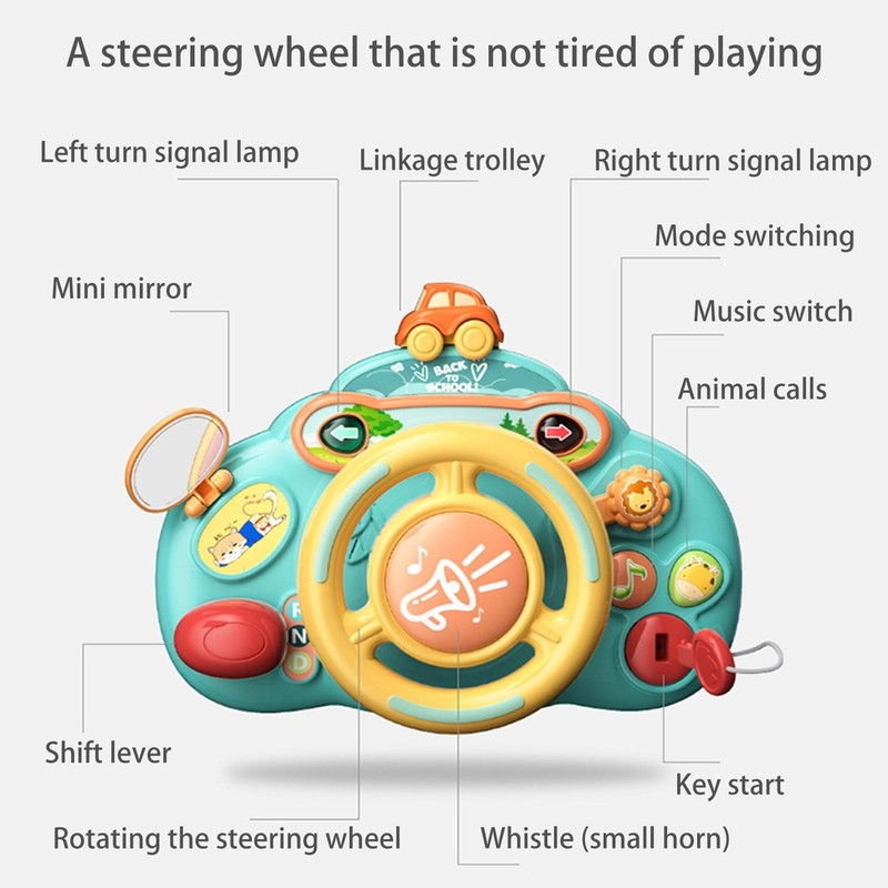 1. Toddler Steering Wheel Toy is designed with lights and sounds, traffic light buttons and siren buttons.