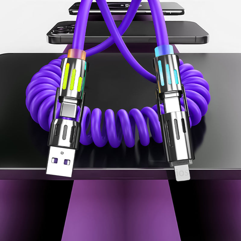 MULTI-DEVICE COMPATIBILITY – One cable for all your devices. Covers USB-A to Lightning, USB-A to Type-C, Type-C to Type-C, and Type-C to Lightning—so you can charge iPhones, Androids, tablets, and accessories without juggling different cords. Ideal for road trips, shared cars, or anyone who’s done with cable clutter.