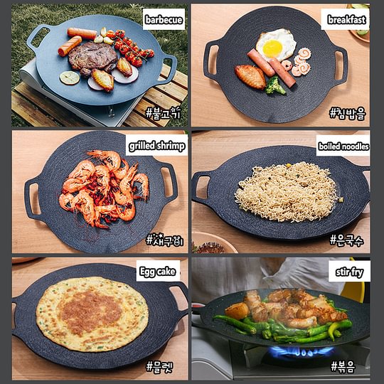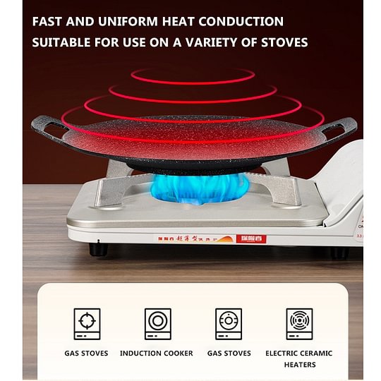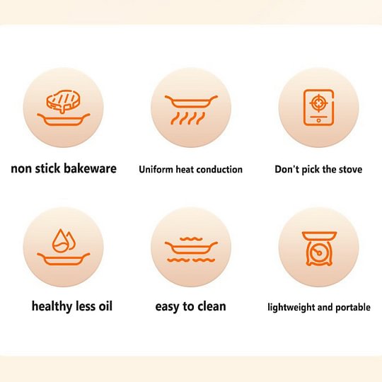 Rapid heating, uniform heat conduction, suitable for use on multiple stoves. No oil running, no oil splashing, suitable for cooking and grilling.